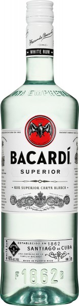 Originated in 1862, Bacardi Superior rum is the original, mixable, light-bodied rum, aged between one and two years in carefully selected oak barrels. After ageing, the rums are blended and passed through a second charcoal filtration to achieve maximum clarity and characteristic Bacardi smoothness.