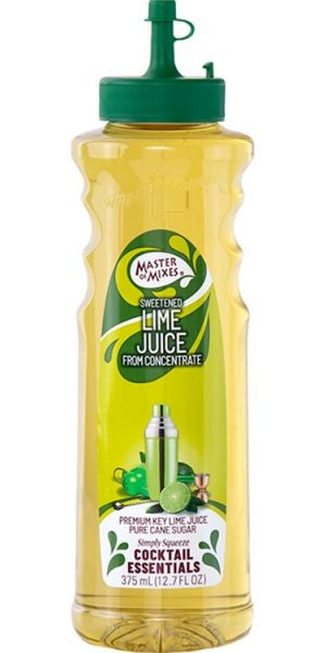 "Master of Mixes 375 mL sweetened lime juice! Made with 100% premium Key lime juice from concentrate and pure cane sugar, this juice features a tart and slightly sweet lime flavor."