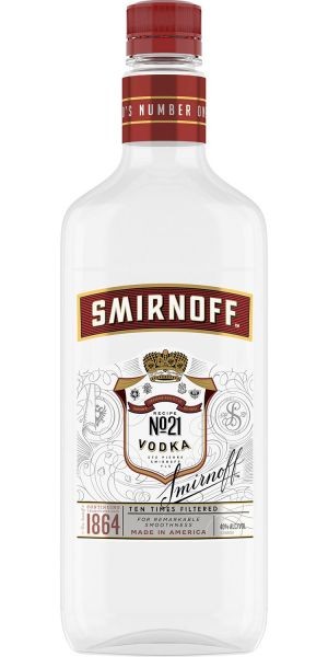 The medium-full bodied Smirnoff Vodka is reminiscent of lemon, white pepper, charcoal; full, bold texture; smoky sensation is followed by a burst of rich flavor.